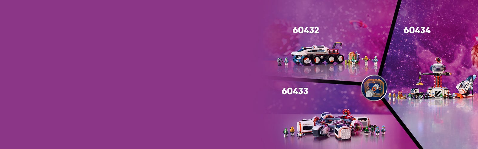 The 8+ LEGO® City Space Base and Rocket Launchpad (60434) space exploration toy is packed with features for out-of-this-world adventures. There’s a control room and 360° space crane tower above the main sector, which opens for access to an equipment carousel, science lab and refreshment area. The set also includes a spaceship, launchpad, construction vehicle and a planet scene with toy energy crystals and vegetation, plus 6 space crew minifigures and 1 robot and 2 alien figures for imaginative role play.