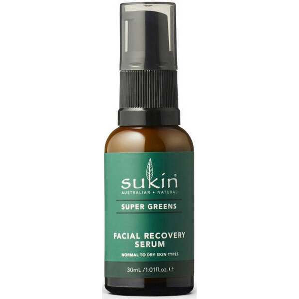Our hydrating, nutrient filled daily Facial Recovery Serum is infused with Super Greens Extracts of Kale, Spirulina and Chlorella to assist in the maintenance of a radiant, even skin tone. An antioxidant rich blend of Acai, Goji Berry Extracts and Grape Seed Oil promote lightweight hydration and youthful looking skin.