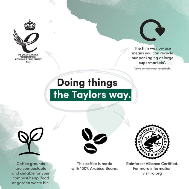 Every Taylors coffee is roasted to a unique profile to bring the best out of the bean, then ground straight into the bag to capture the freshest flavour. To experience this coffee at its best, use one dessertspoon of coffee per cup in a cafetire or filter, then store in your fridge and enjoy within two weeks.Package Type