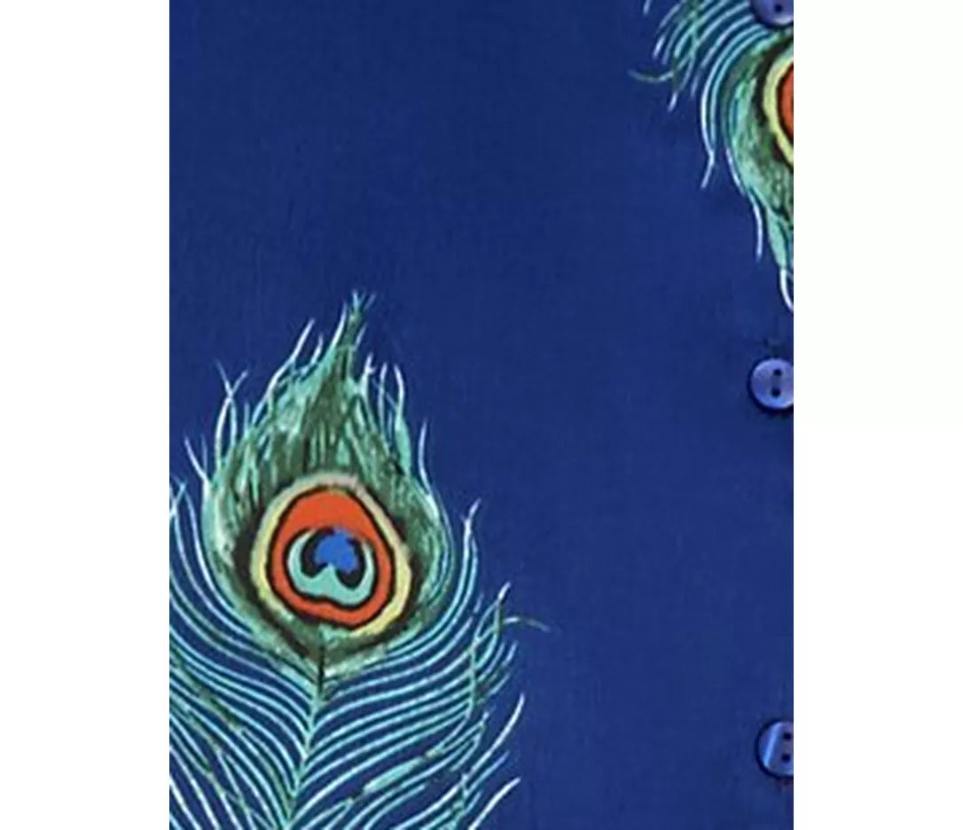 In a hand-painted peacock feather print, this long-sleeve pyjama set by Their Nibs is finished in satin with contrast piping.