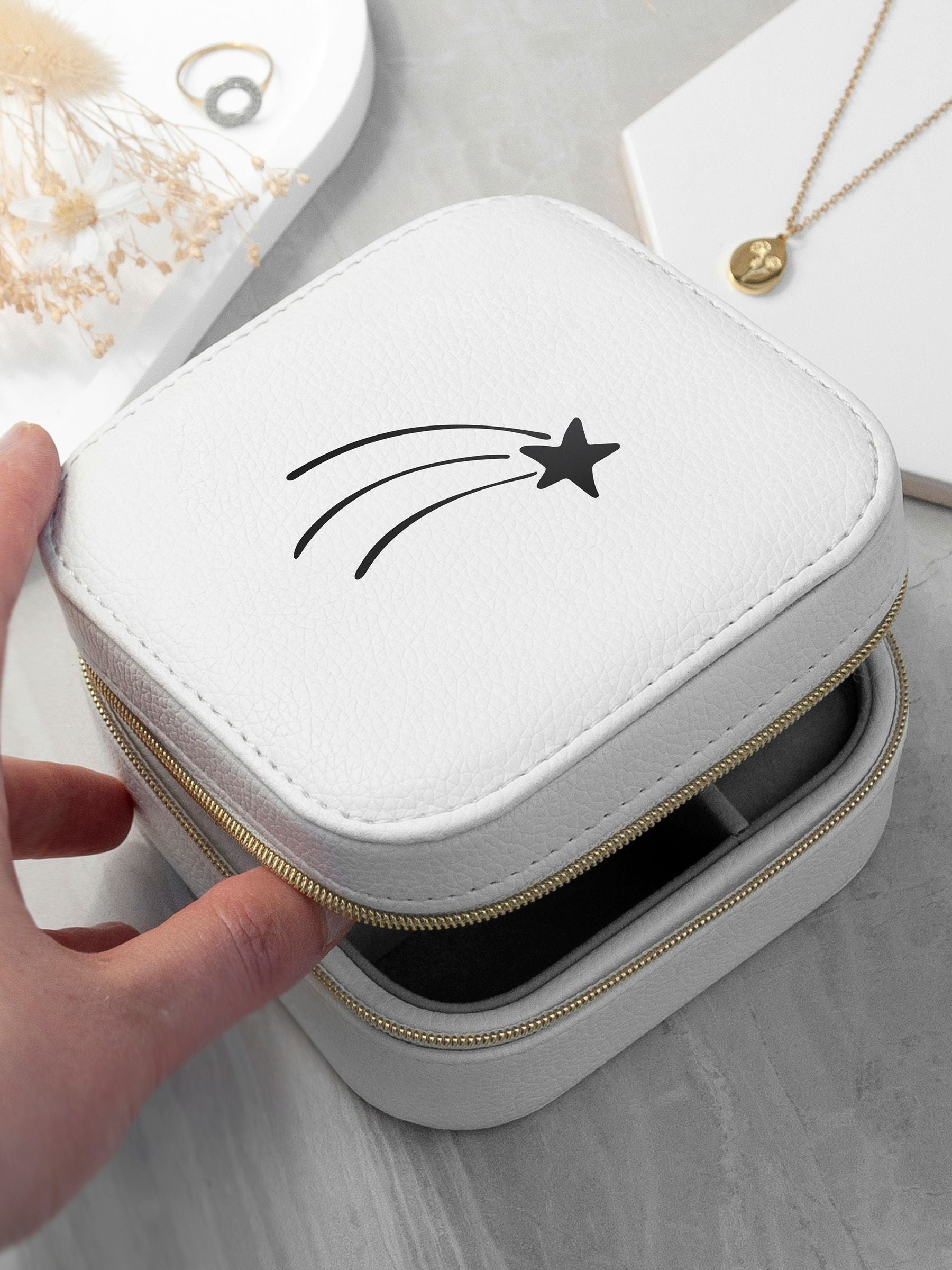 Elevate your travel look with our sensational Customisable Icon White Square Travel Jewellery Case - where elegance meets functionality. Durable, lightweight, and perfect for on-the-go adventures, this jewellery case has plenty of space for all her trinkets, accessories, and jewellery essentials. In addition, the super soft velvet interior provides cushioning for her jewellery, ensuring they don’t get damaged even when she’s on her travels. The effortlessly stylish look of this jewellery case, with its sleek golden zip-around closure, means she’ll rarely want to be without it. It’ll be just as at home in her suitcase on holiday as it is on her dressing table at home - it truly is a versatile accessory. Select one of our stunning celestial icons. Dimensions: 10.9cm x 10.8cm x 6.2cm.