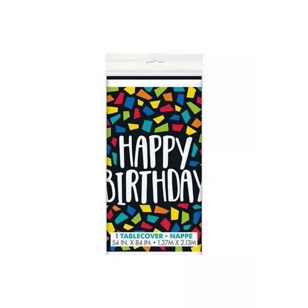Product Information material plastic length 84in width 54in design mosaic text occasion birthday packaging display packet euro hook