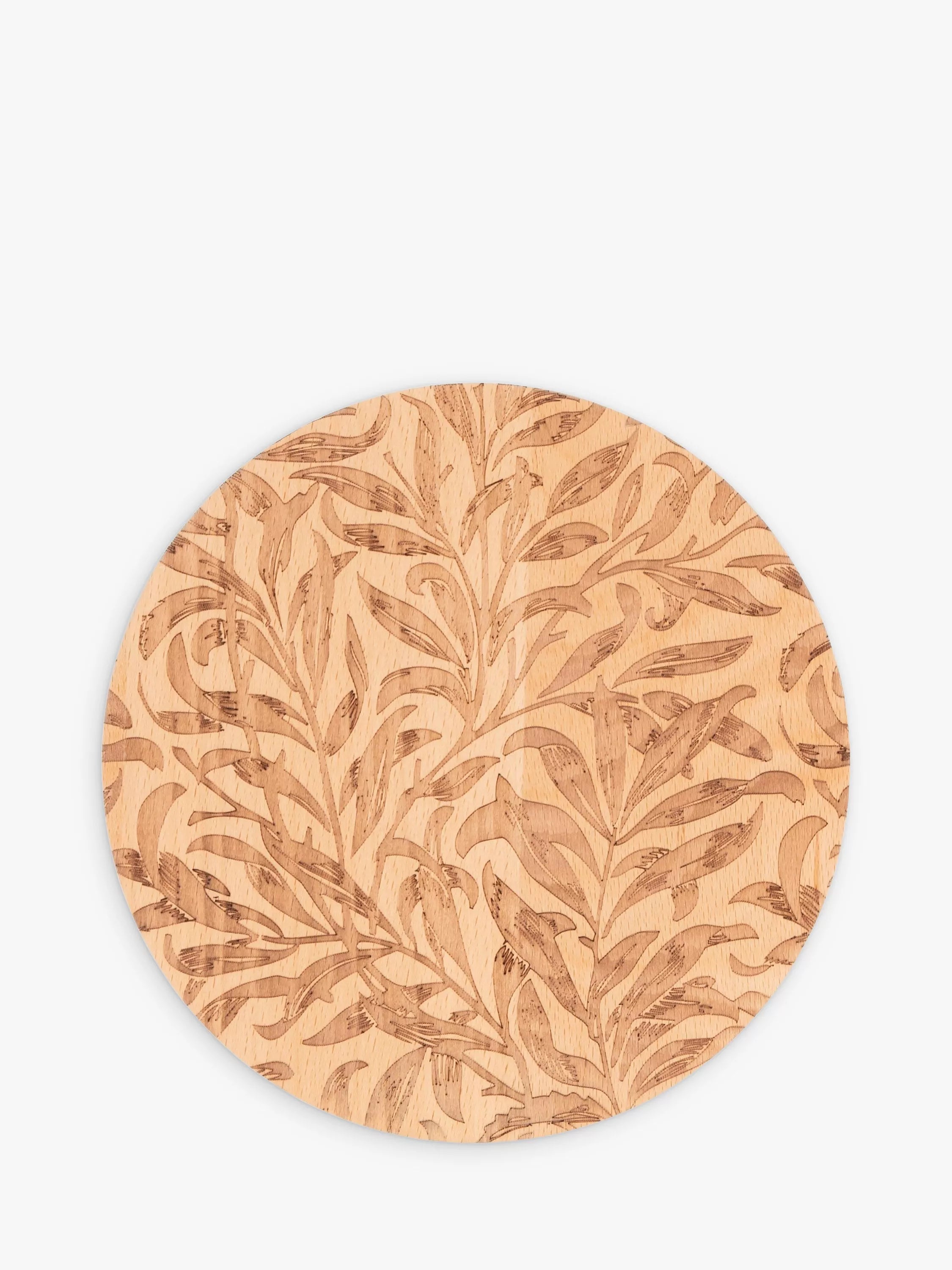 Beautiful round trivet etched with the Willow Boughs print by William Morris. Protects worktops and tables from hot pots, pans and over-to-table items.